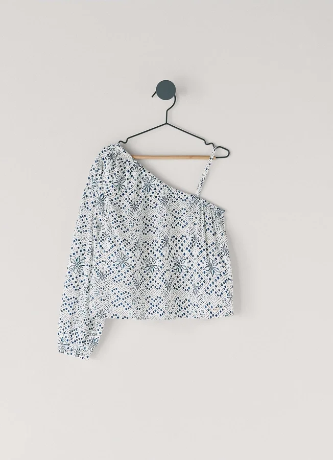 – Long right sleeve with puff detail