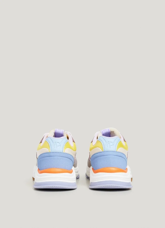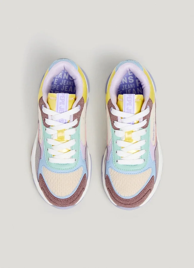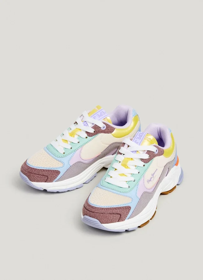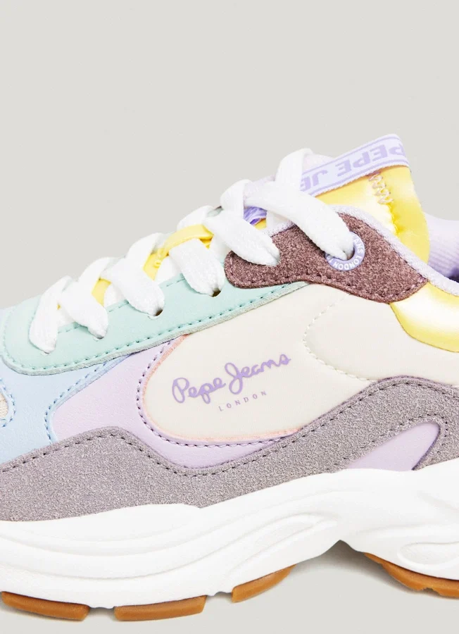 – Trainers in a combination of fabrics and colour contrast