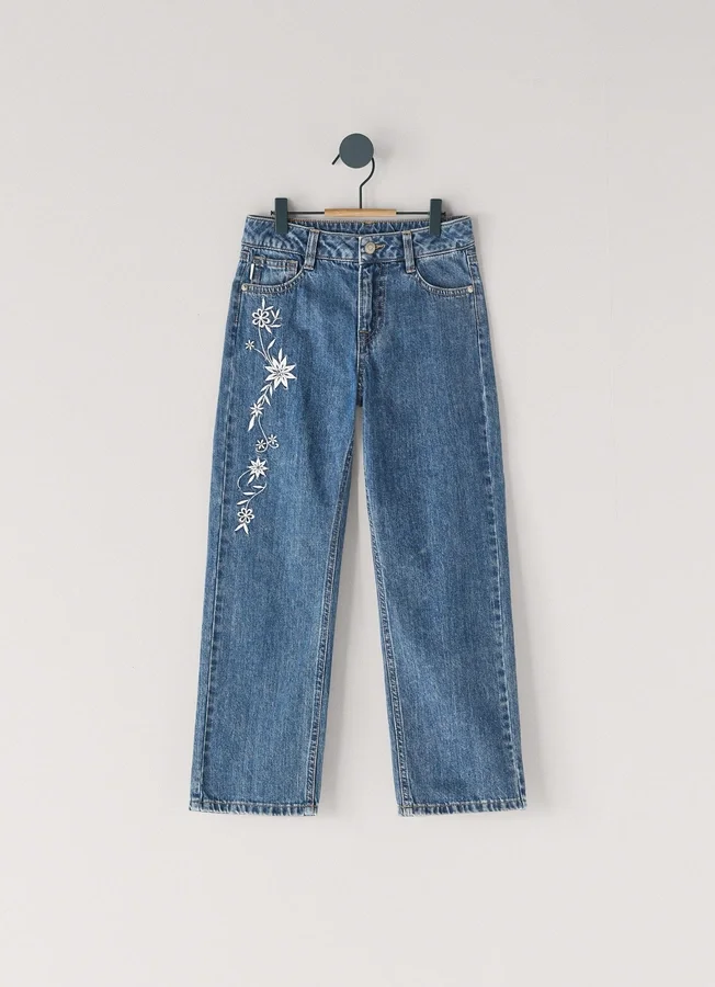 – Embroidered flowers on the front and back pocket