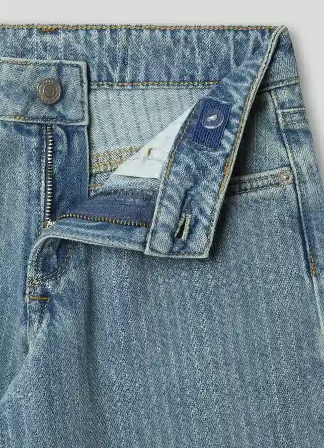 – Rigid denim fabric with fine printed stripes