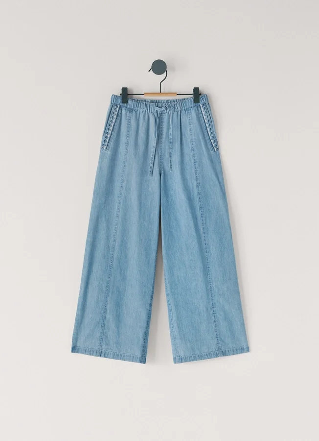 – Wide trousers in cotton denim fabric. A fit you can depend on for maximum comfort and style