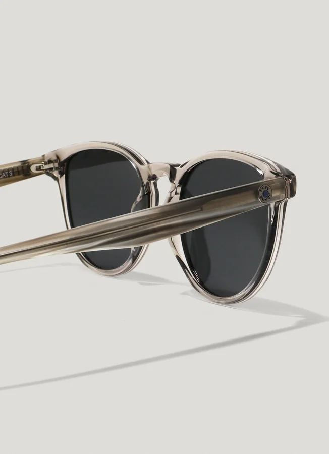 – Sunglasses with a classic round design – Translucent frame in a stone grey shade – Slightly curved temples with a subtle PEPE JEANS logo – Lenses in soft black tones with category CAT 3 – 100% UV protection and impact resistance – Lenses with high resistance to abrasion and scratches – Dimensions: 52 mm lenses, 19 mm bridge, and 145 mm temples
