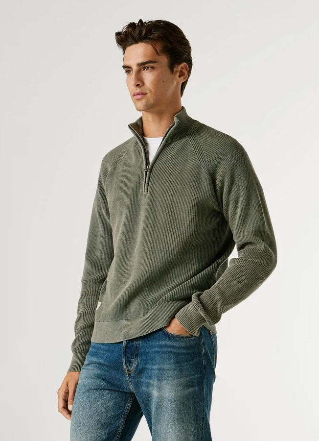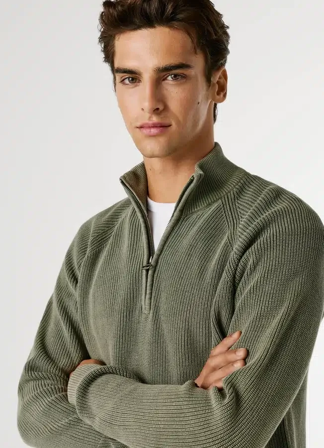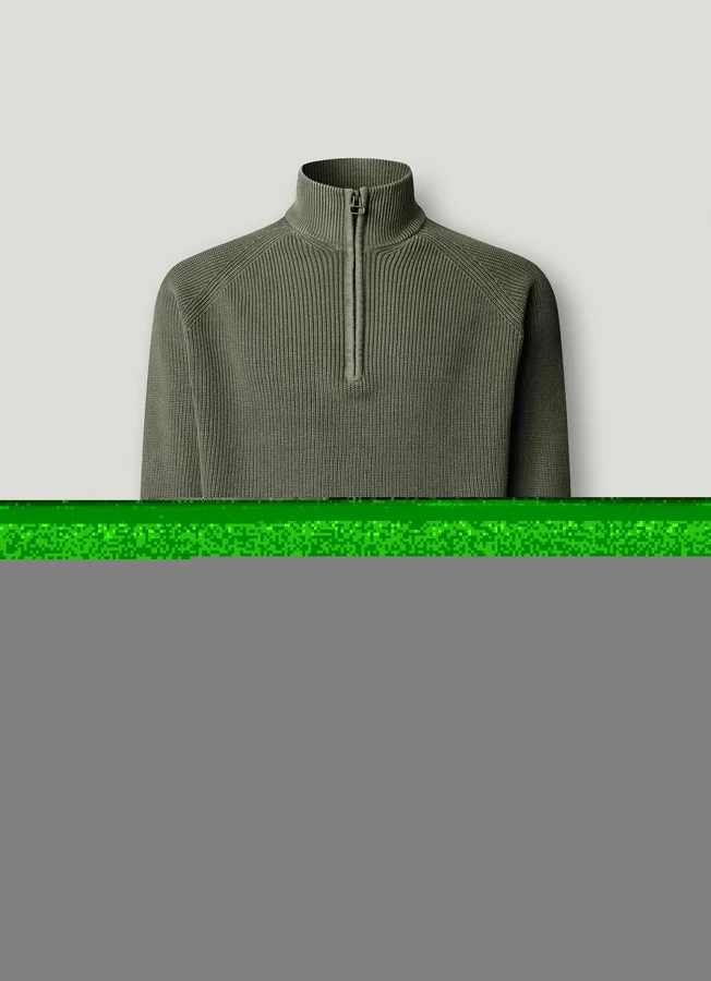 – High neck with half zip closure