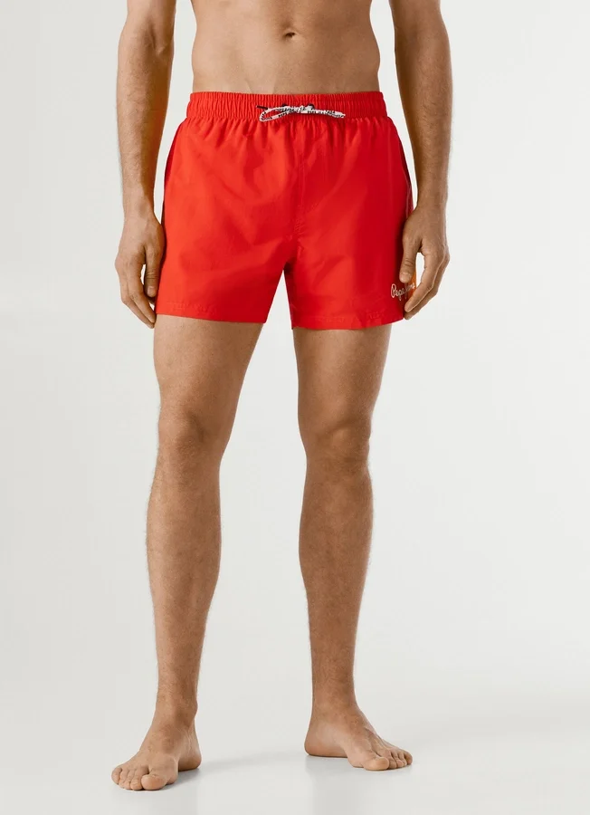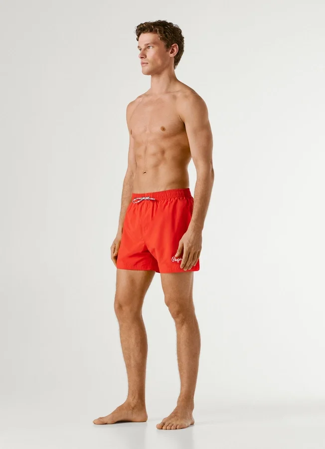 – Lightweight solid color swim shorts