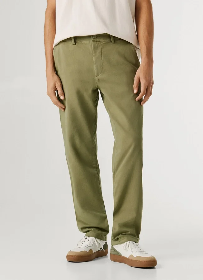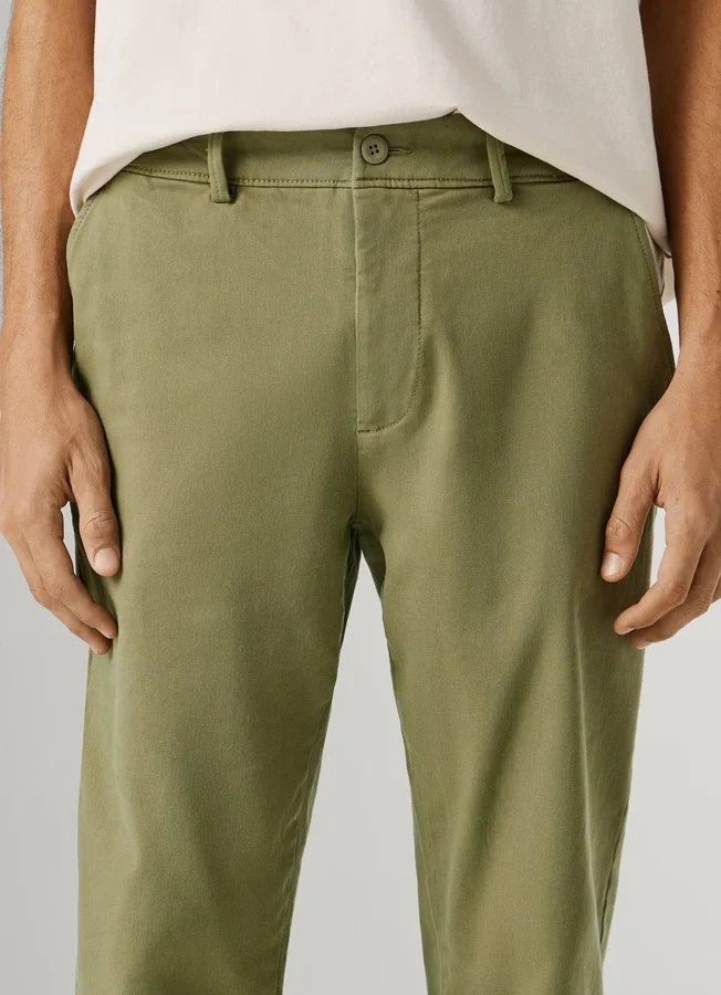 – Chino trousers in stretchy gymdigo fabric