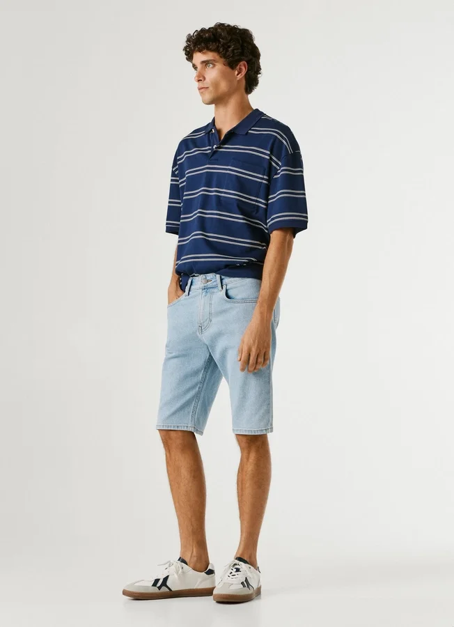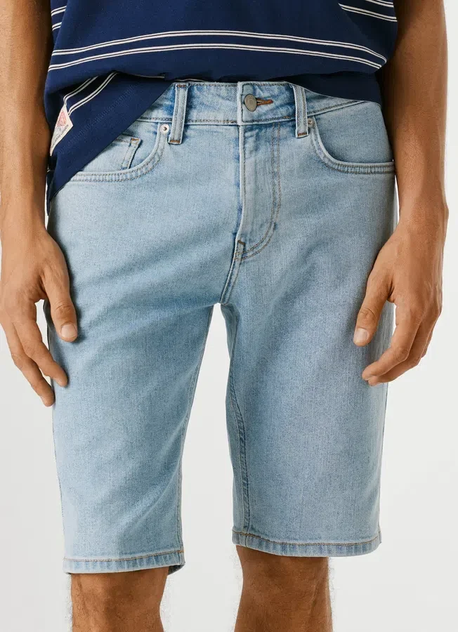 – Shorts in flexible stretch denim fabric