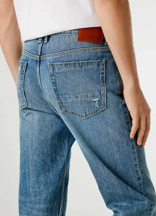 – Leather patch with PEPE JEANS logo sewn on the rear waistband Fitting