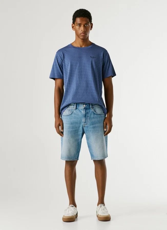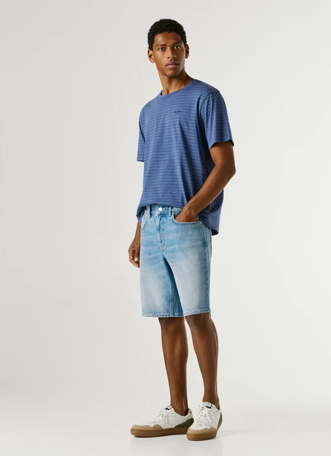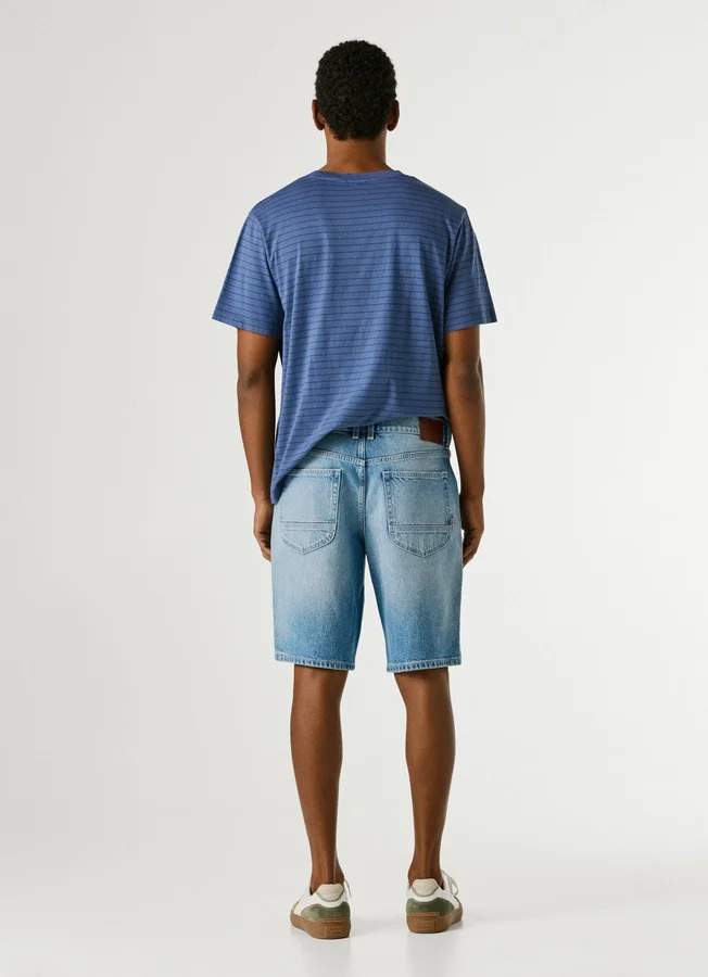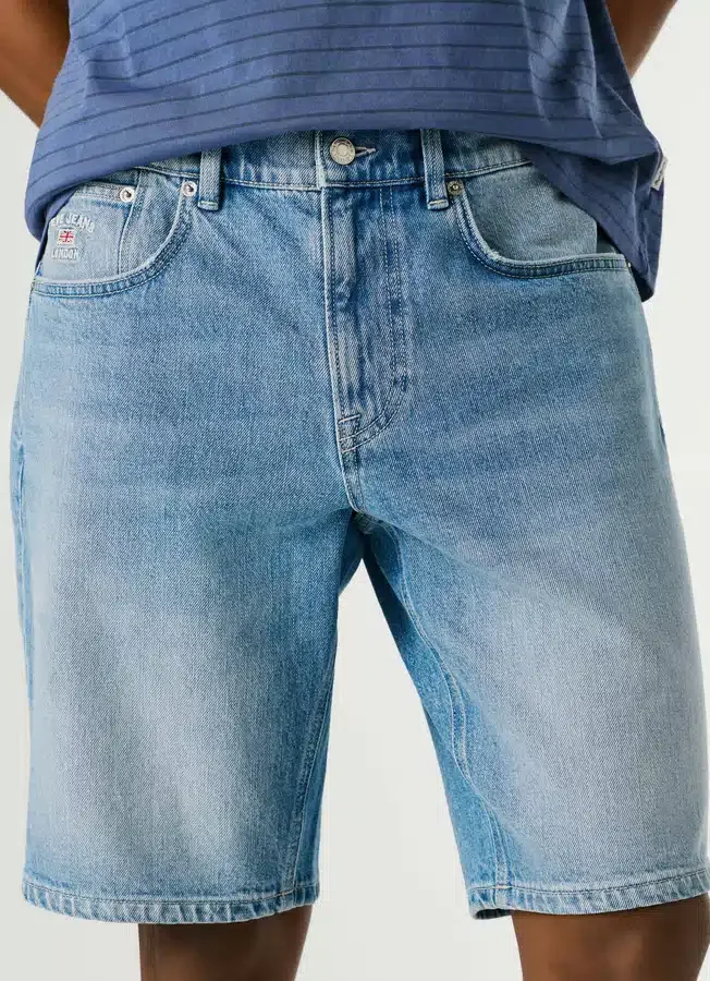 – Shorts in flexible stretch denim fabric
