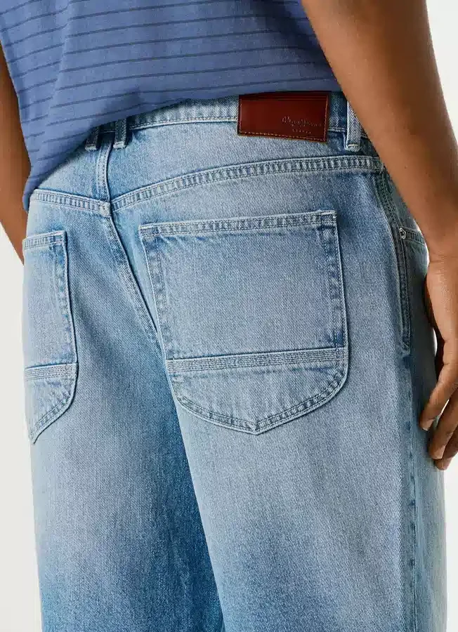 – Leather patch with logo sewn on rear waistband Fitting