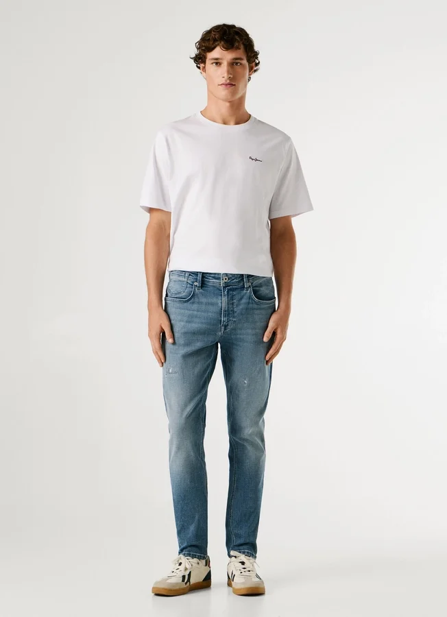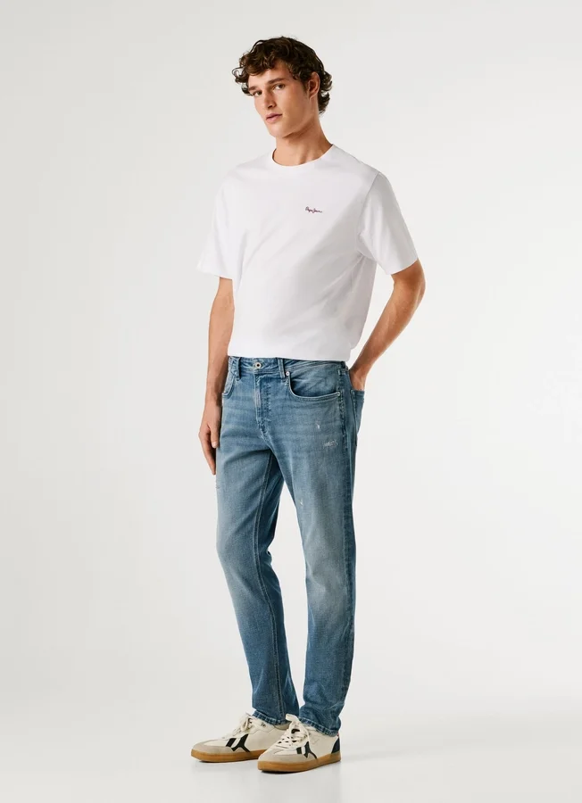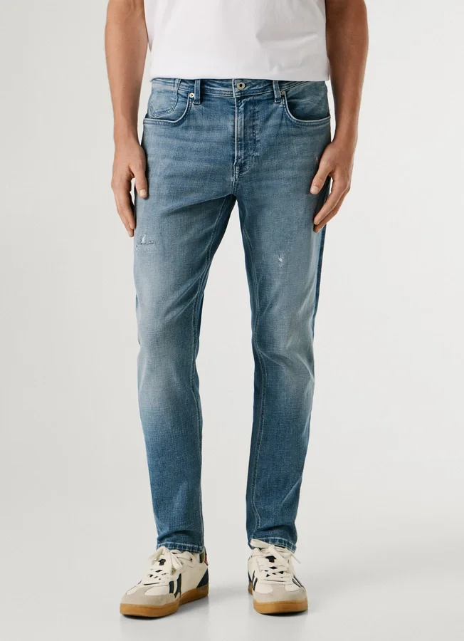 – Taper fit jeans. A fit with a little extra space around the thigh and tapers at the ankle.