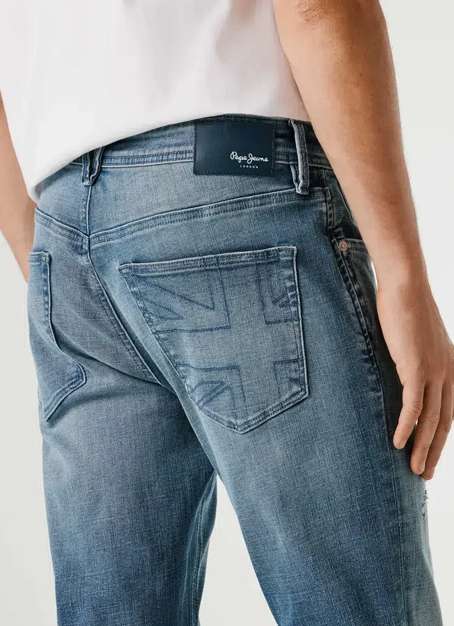 – Embroidered British flag details on back pocketFitting