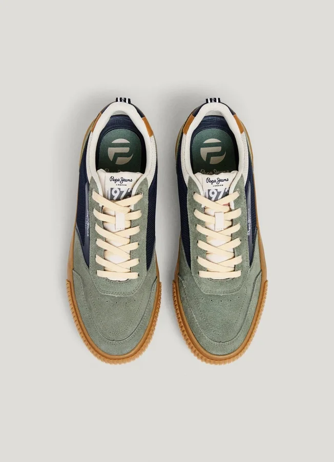 – Trainers in a combination of materials and colour contrast