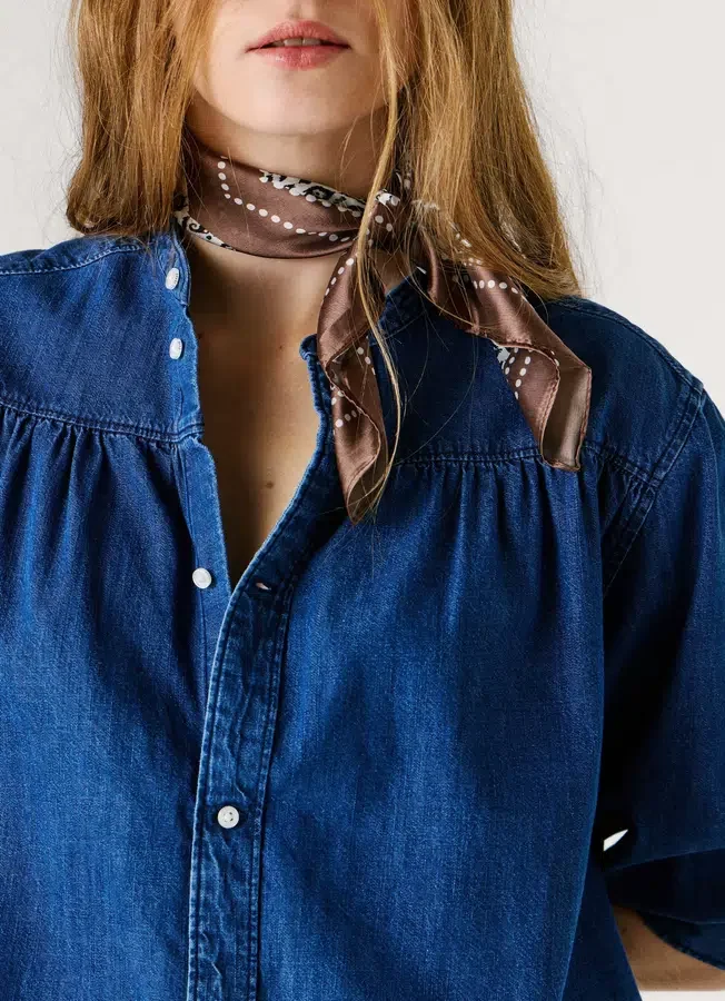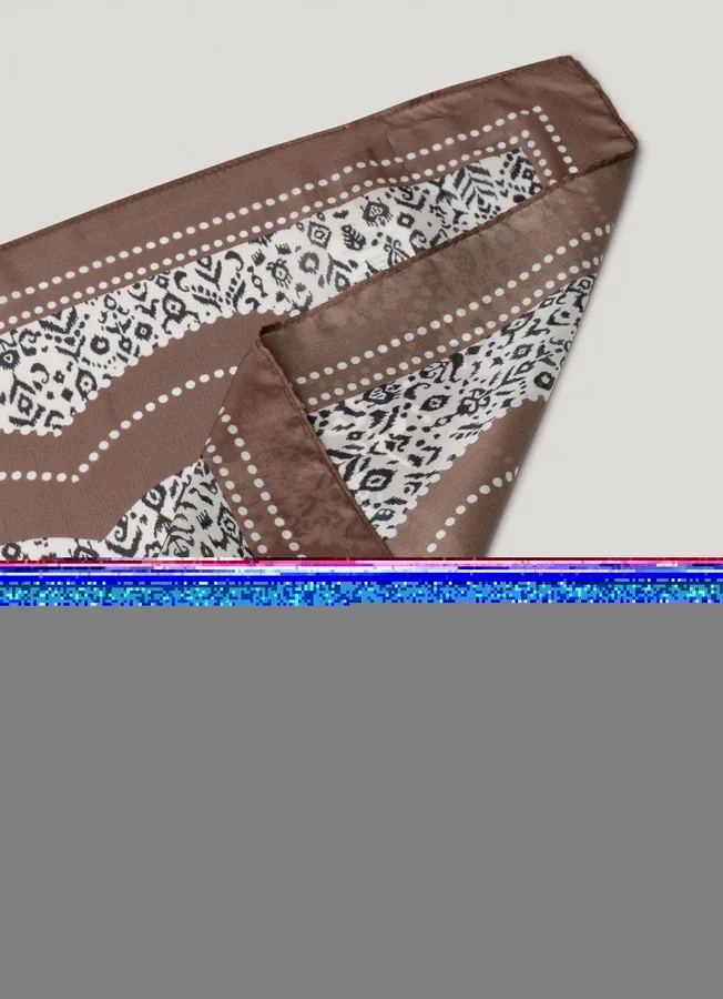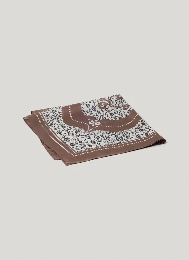 – Scarf made of 100% cotton twill – Square design – Geometric print with contrasting blocks and lines – Maxi size PEPE JEANS logo in the center – Finely finished edges with matching stitching