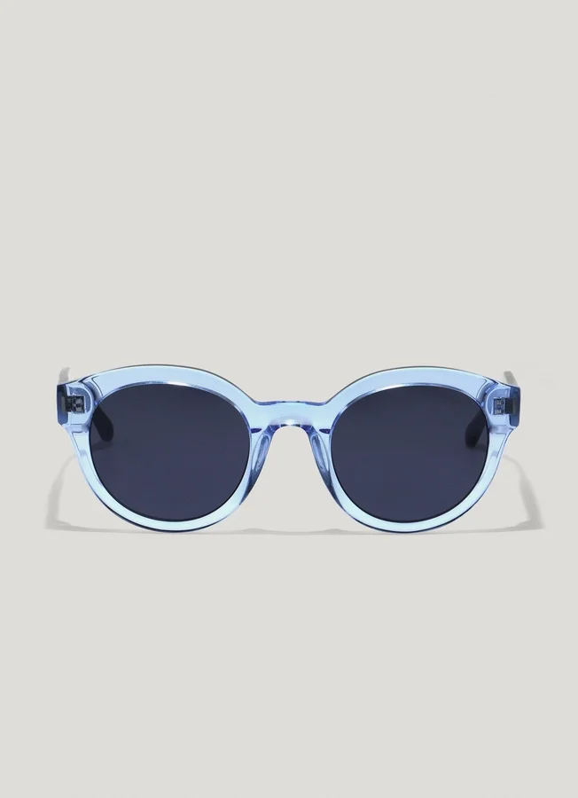 – Round sunglasses with soft curves in their silhouette – Classic frame in ice blue acetate – Translucent temples with custom-designed internal metal rod – Lenses in soft blue tones with CAT 3 category – 100% UV protection and impact resistance – Lenses with high resistance to abrasion and scratches – Circular PEPE JEANS logo engraved in golden letters on the temples – Dimensions: 49 mm lenses, 23 mm bridge, and 140 mm temples