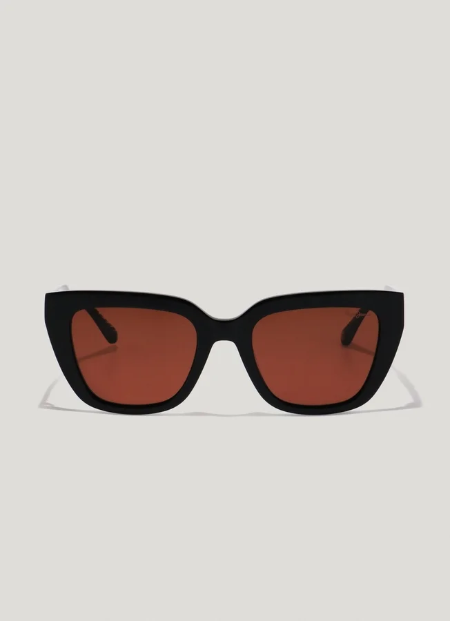 – Square sunglasses with smooth lines for a modern style – High-quality black acetate frame – Temples with contrasting graphic details that enhance their style – Lenses in soft brown tones with CAT 3 category – 100% UV protection and impact resistance – Lenses with high resistance to abrasion and scratches – Circular PEPE JEANS logo engraved in golden letters on the temples – Dimensions: 52 mm lenses, 20 mm bridge, and 140 mm temples