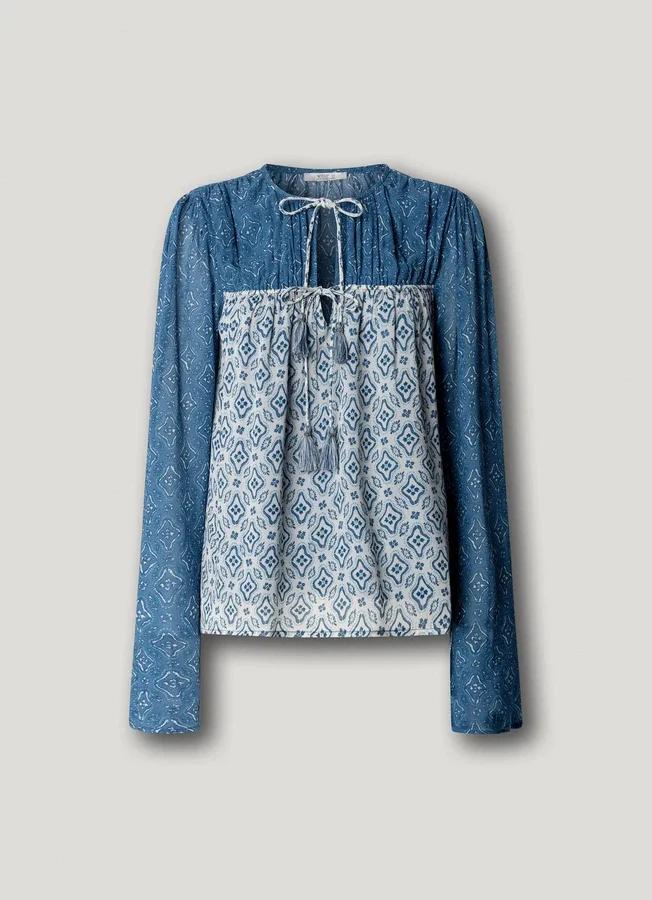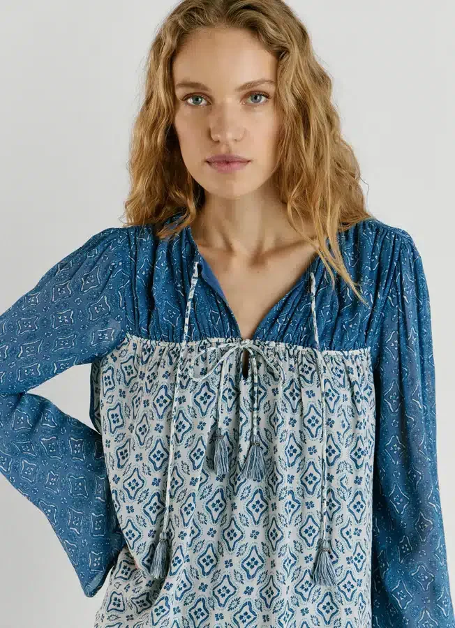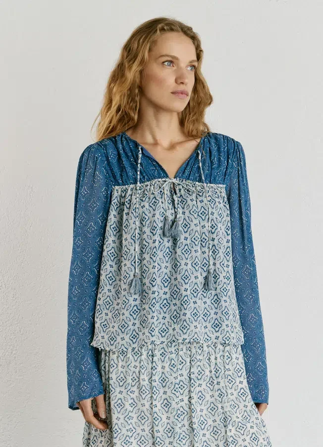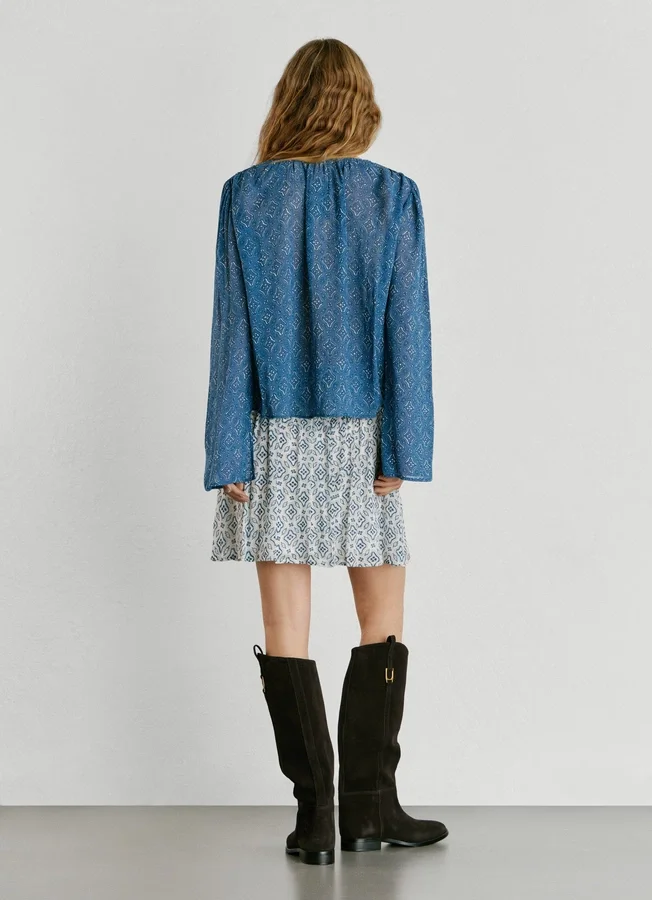 – Blouse in fluid fabric with metallic threads