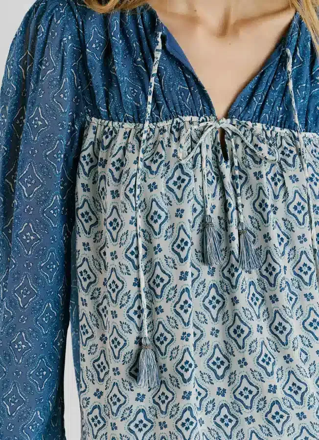 – Self-fabric ties with decorative tassels