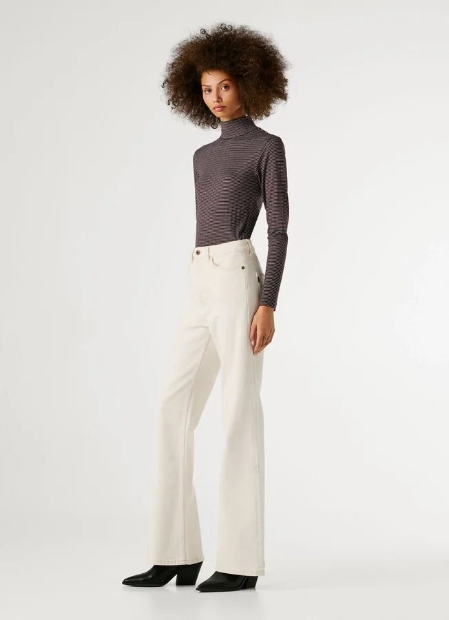 – Flare fit jeans. A close-to-body fit that widens from the knee down