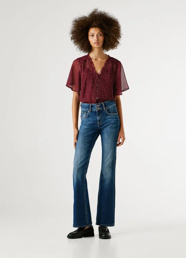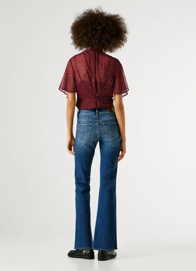– Flare fit jeans. A close-to-body fit that widens from the knee down