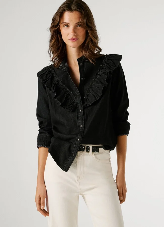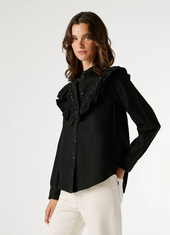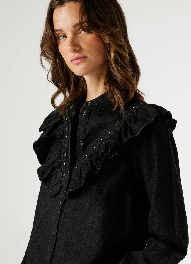 – Blouse in rigid denim fabric
