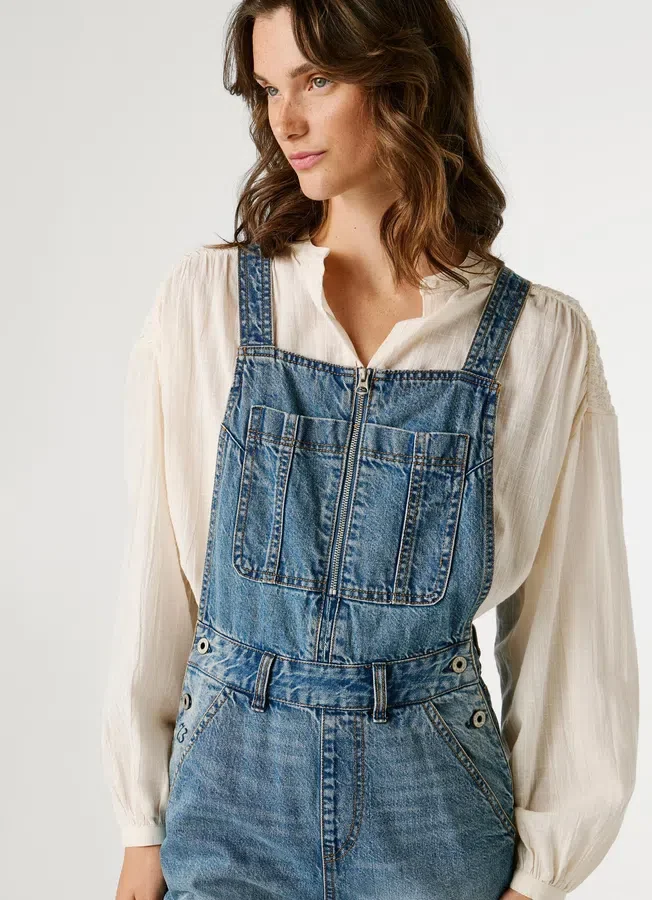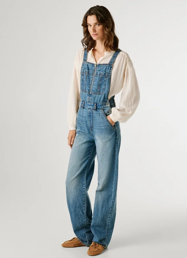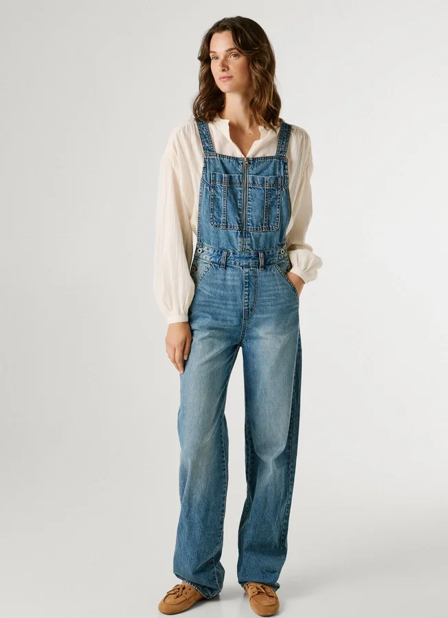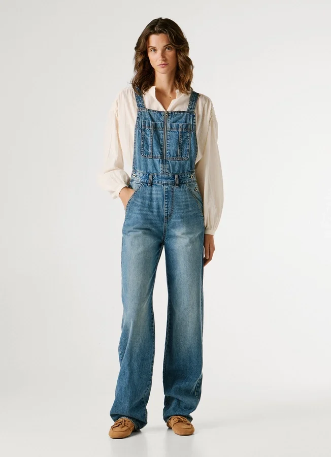 – Non-stretch denim maxi dungarees