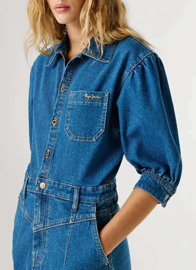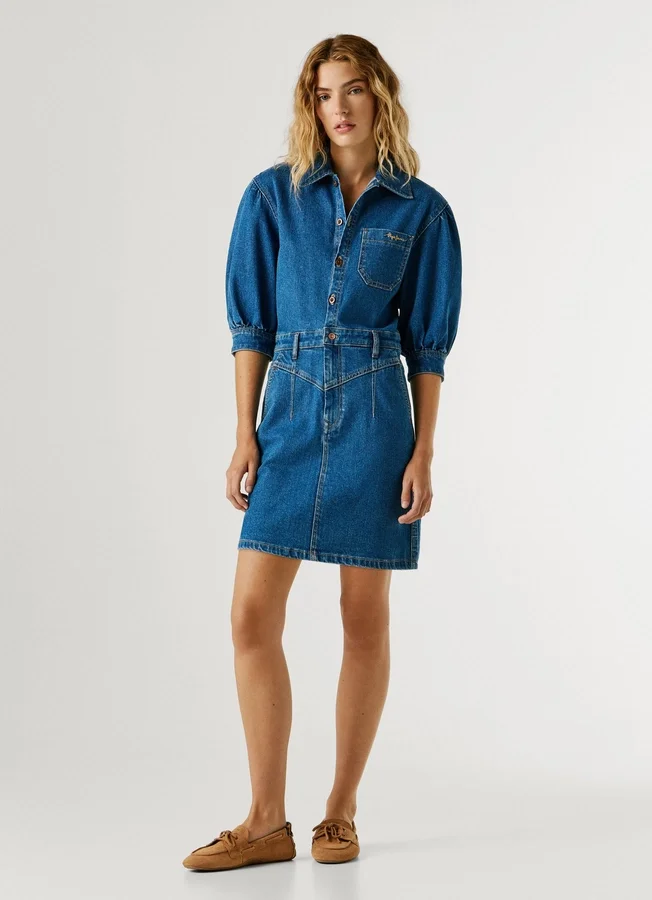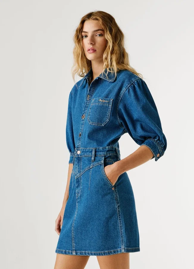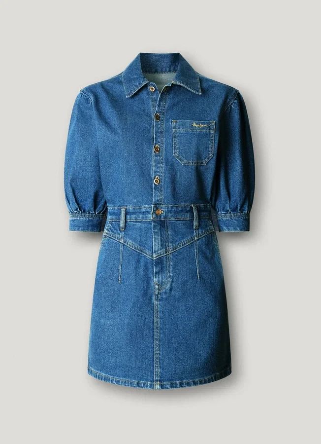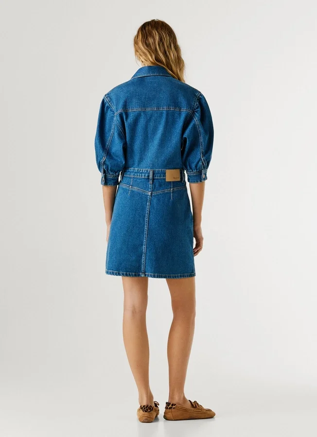 – Short dress in stretchy and flexible denim fabric