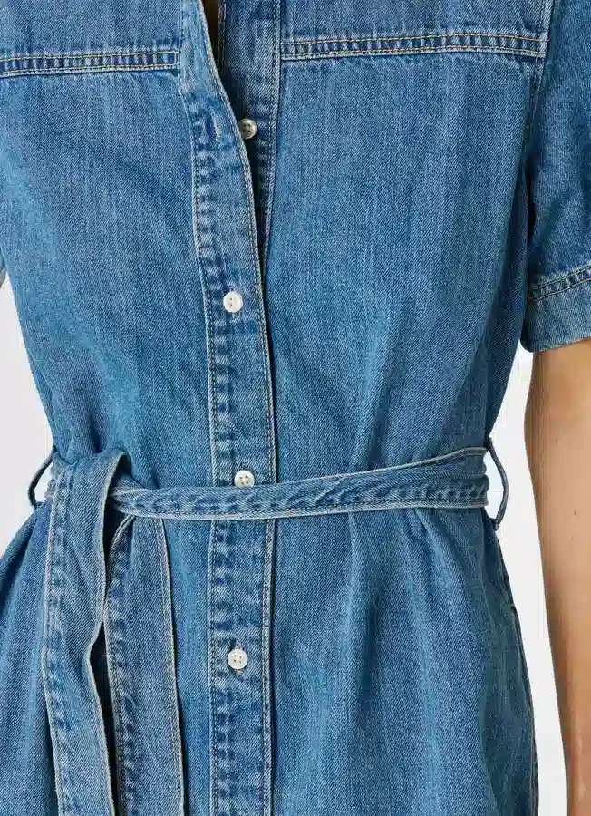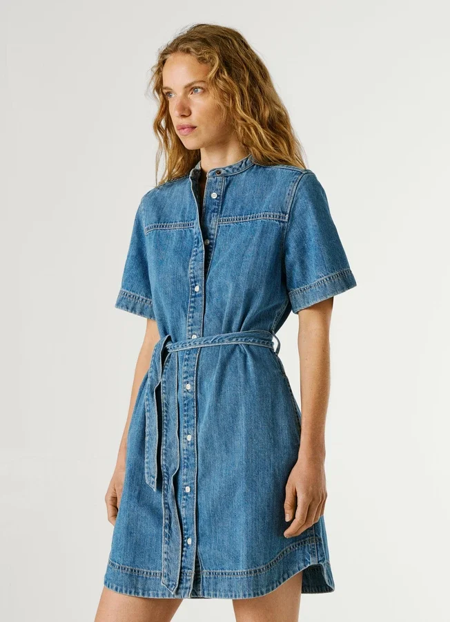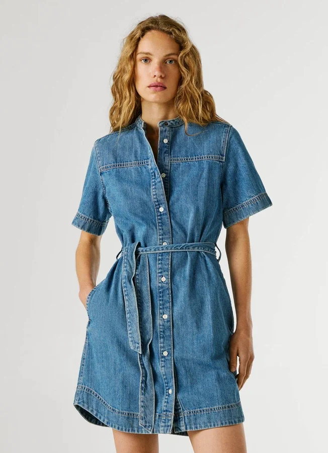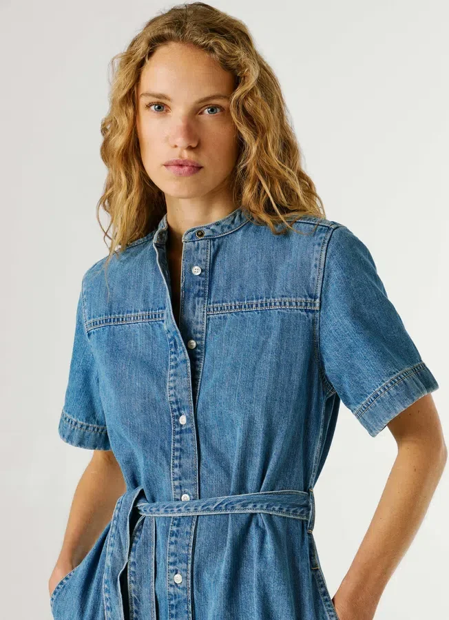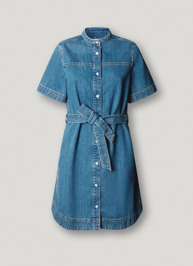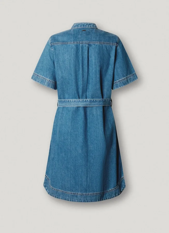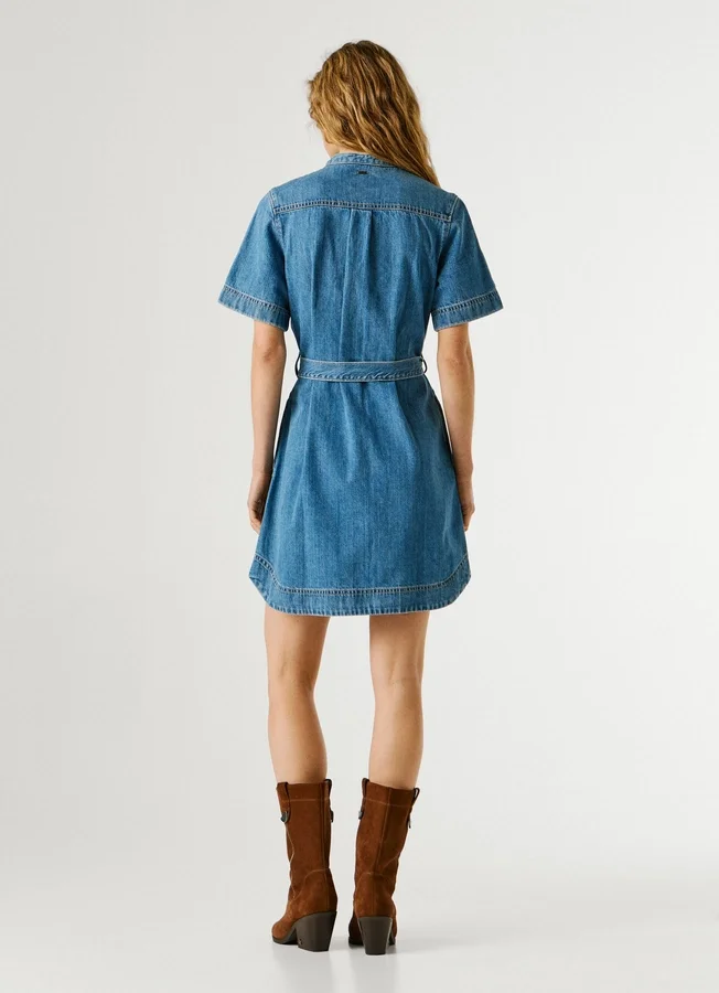 – Short dress in rigid denim fabric