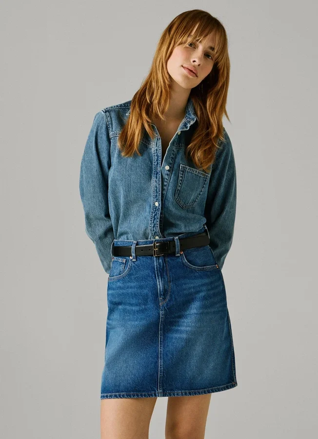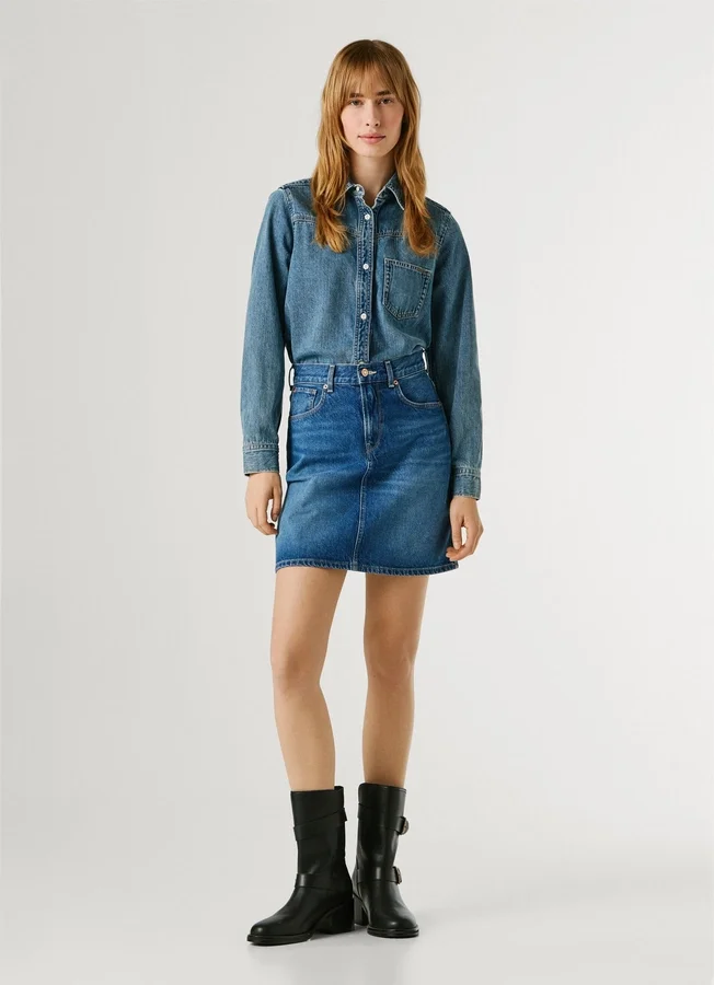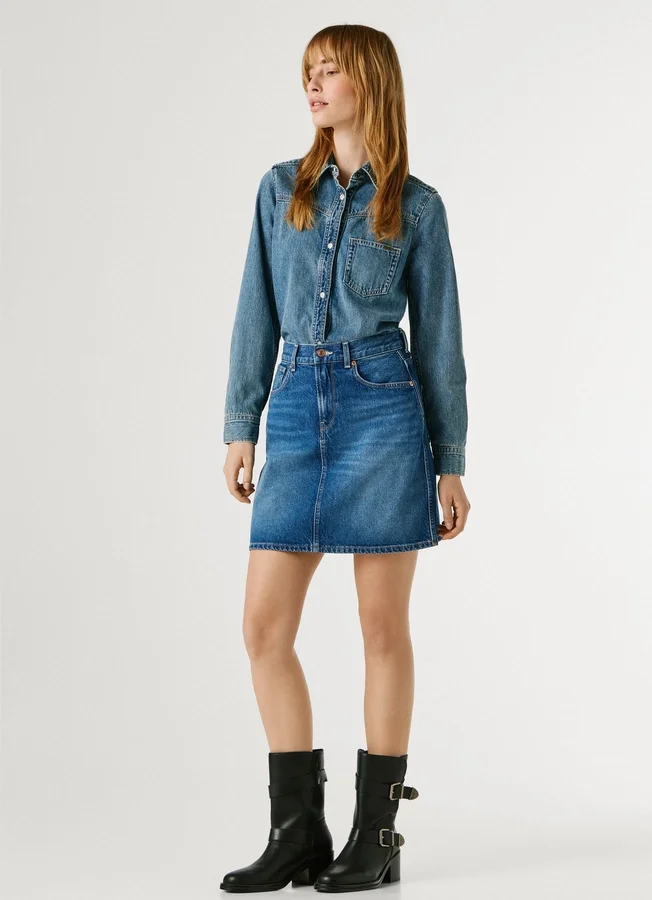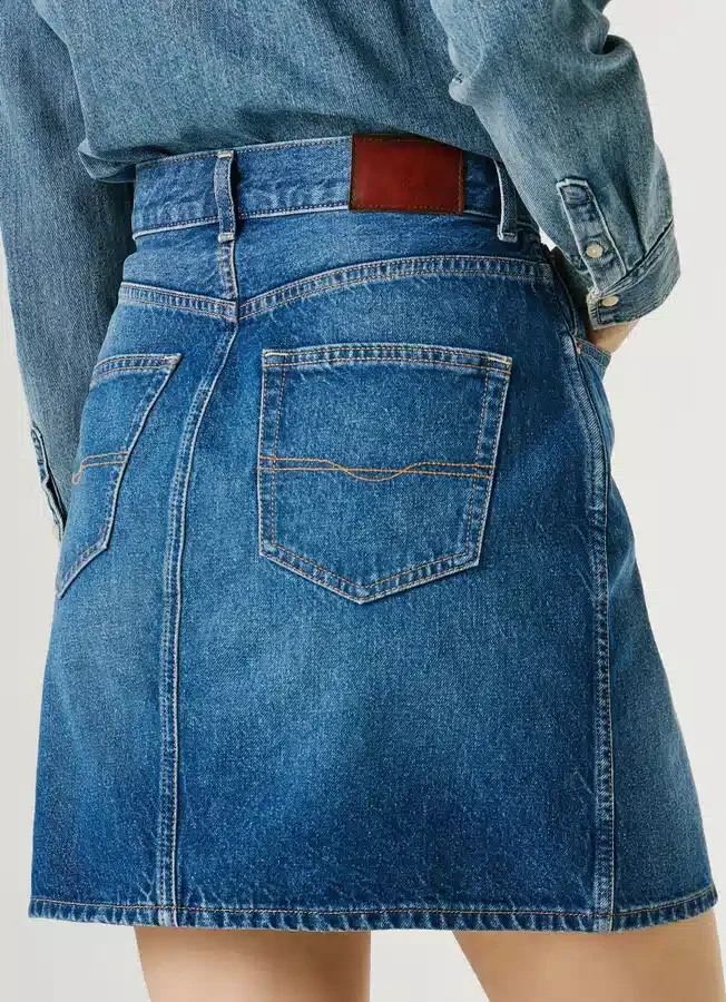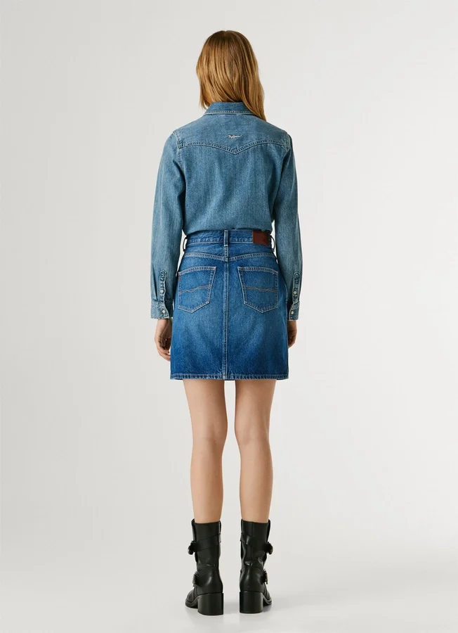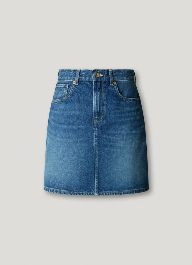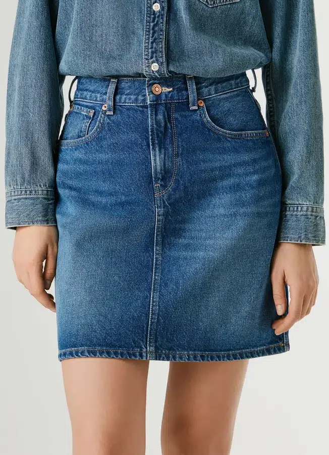 – Short skirt in rigid denim fabric