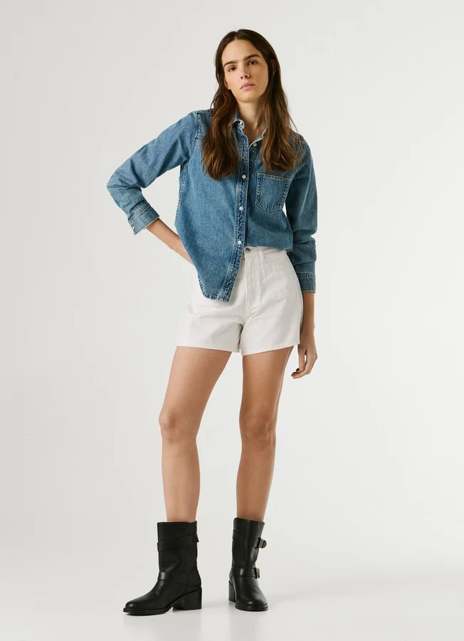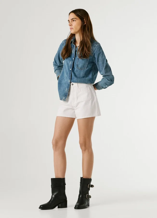– Rigid denim A-line shorts