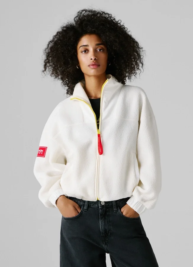 – Contrast color zip pull with embossed logo