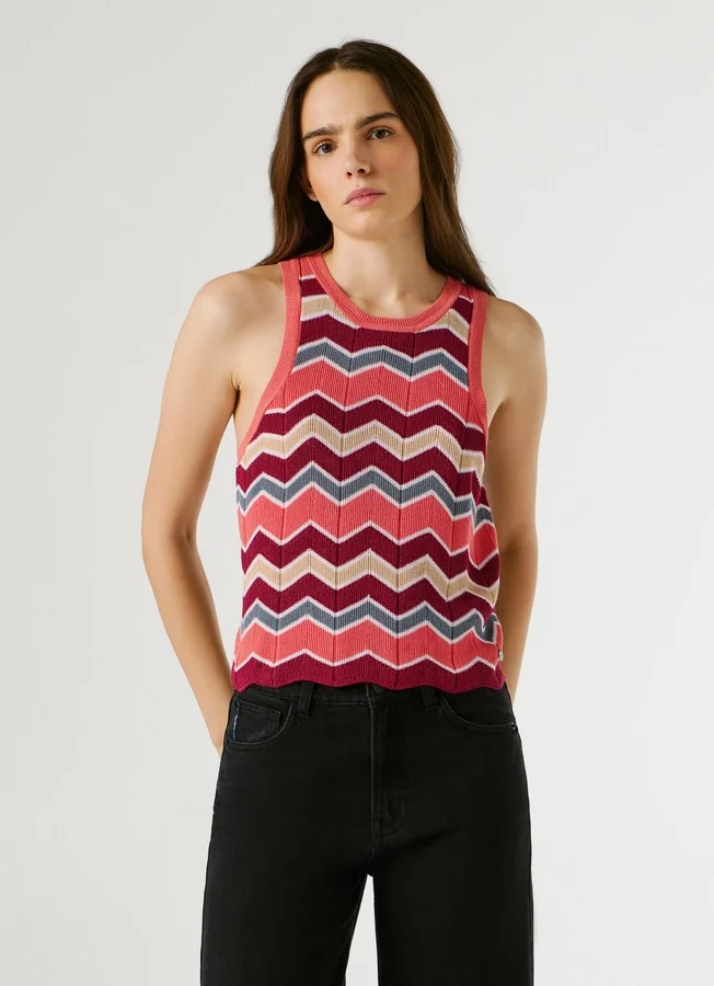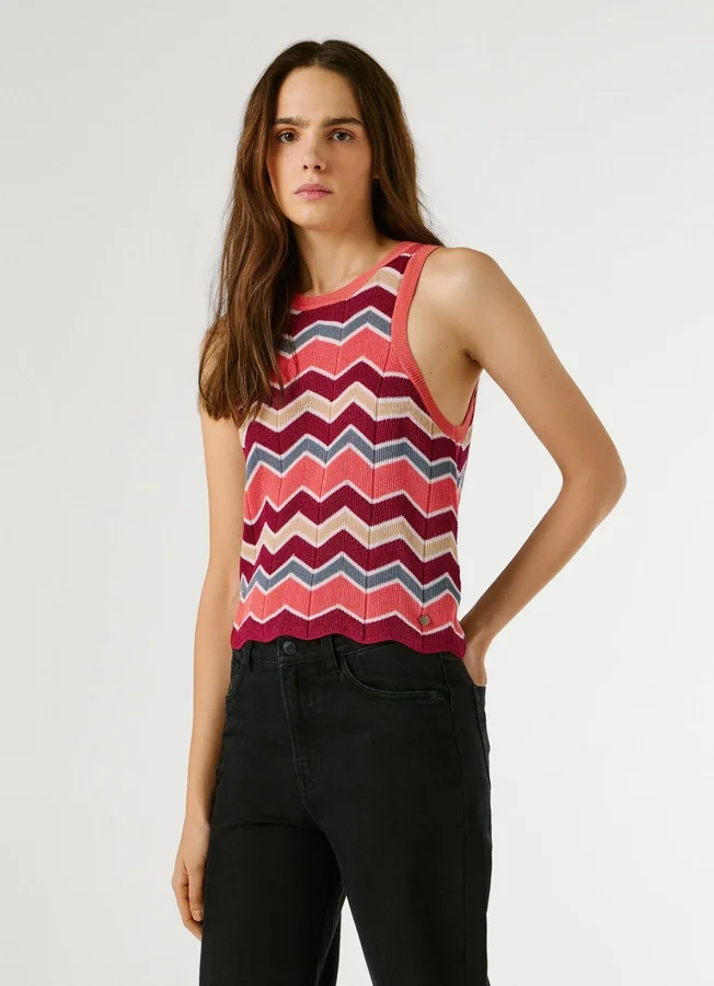 – Circular metal plaque with PEPE JEANS logo sewn on hem