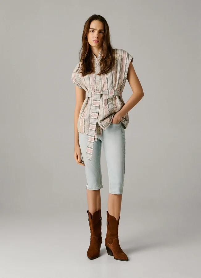 – Shorts in flexible stretch denim fabric