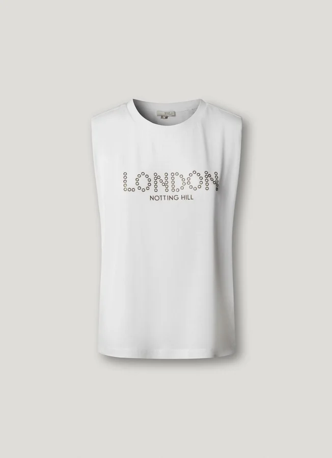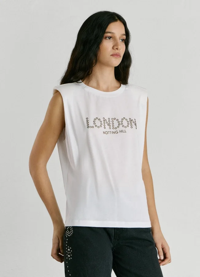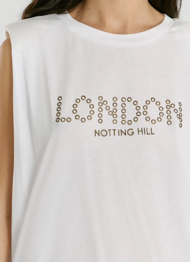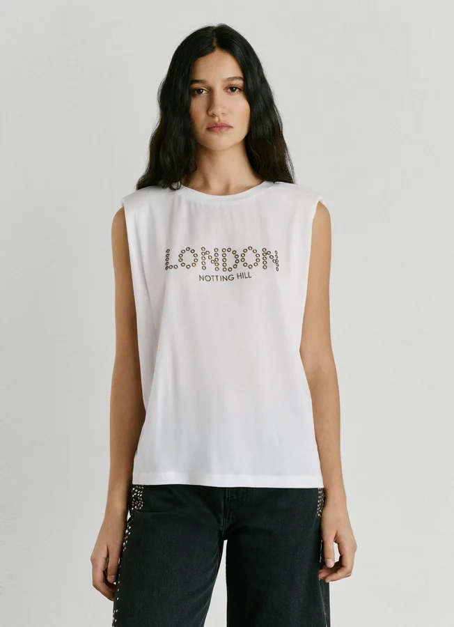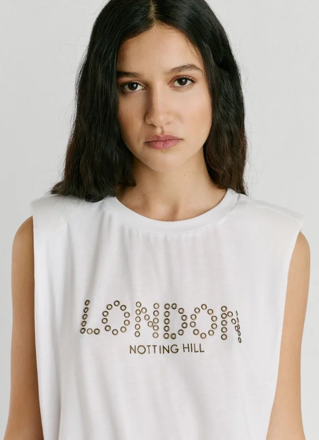 – Graphic with studs on the front with embroidered details