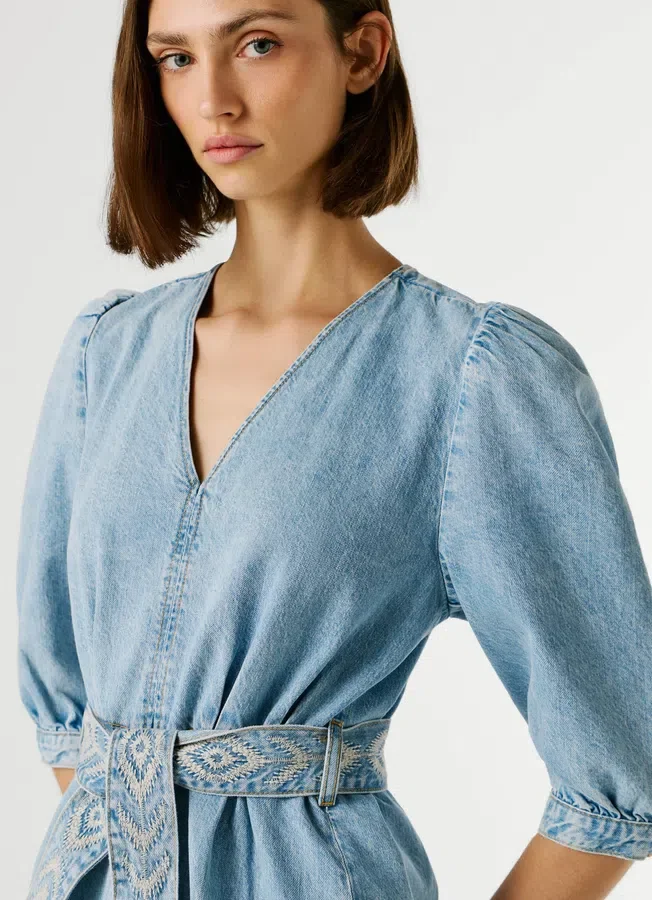 – Same fabric belt with embroidered details