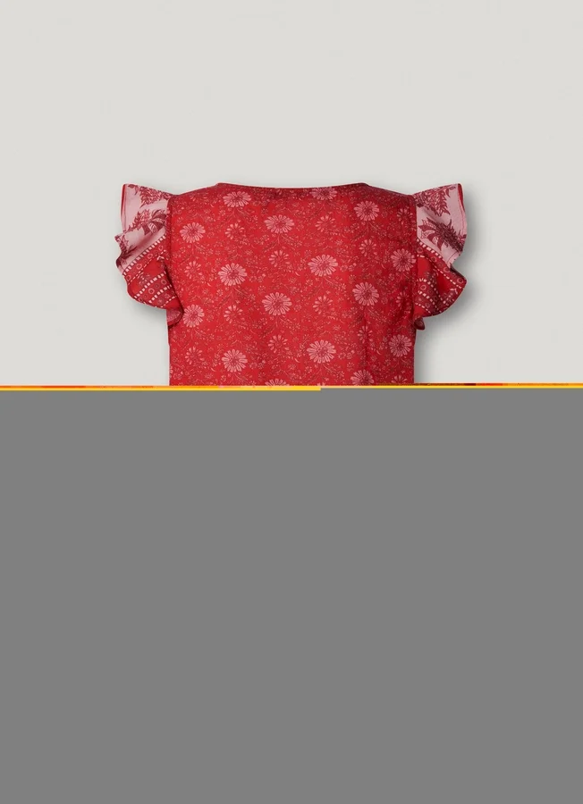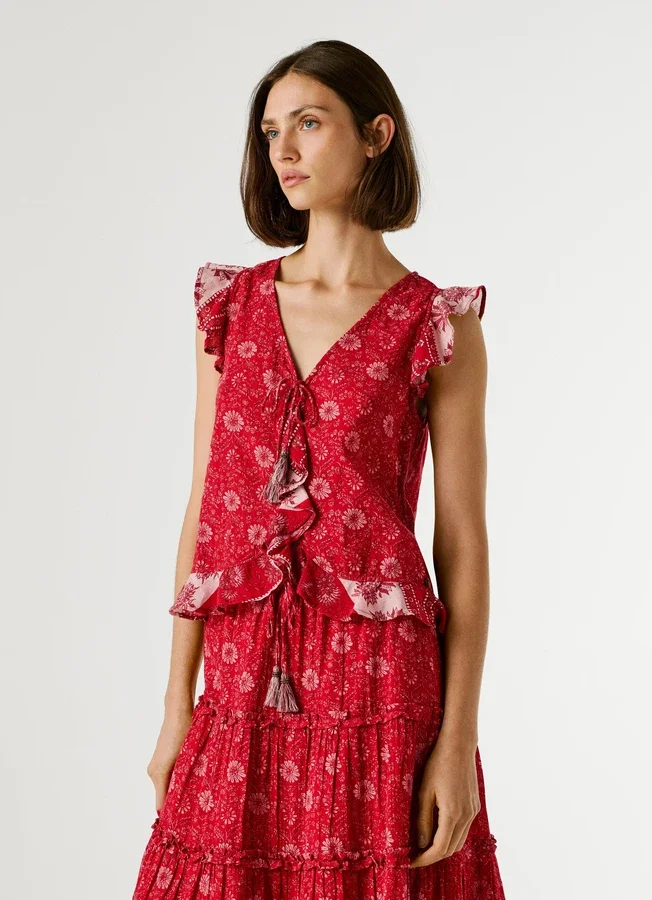 – Ruffles on the front placket and hem