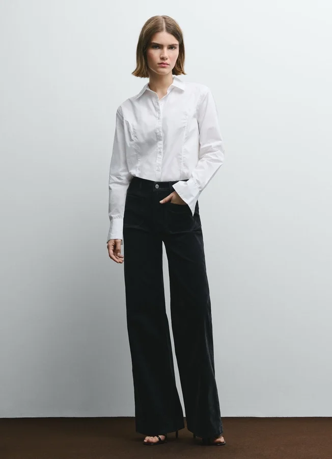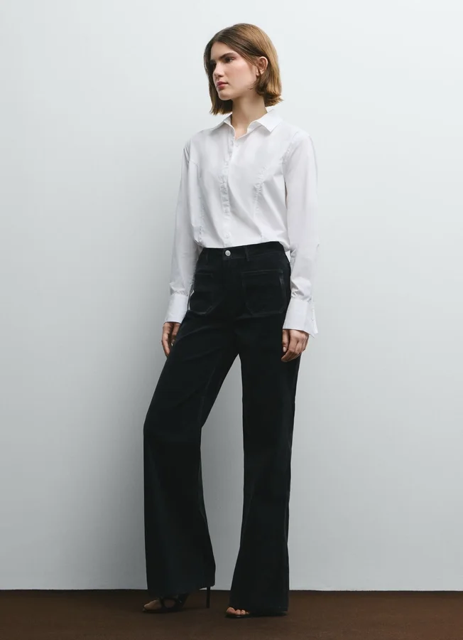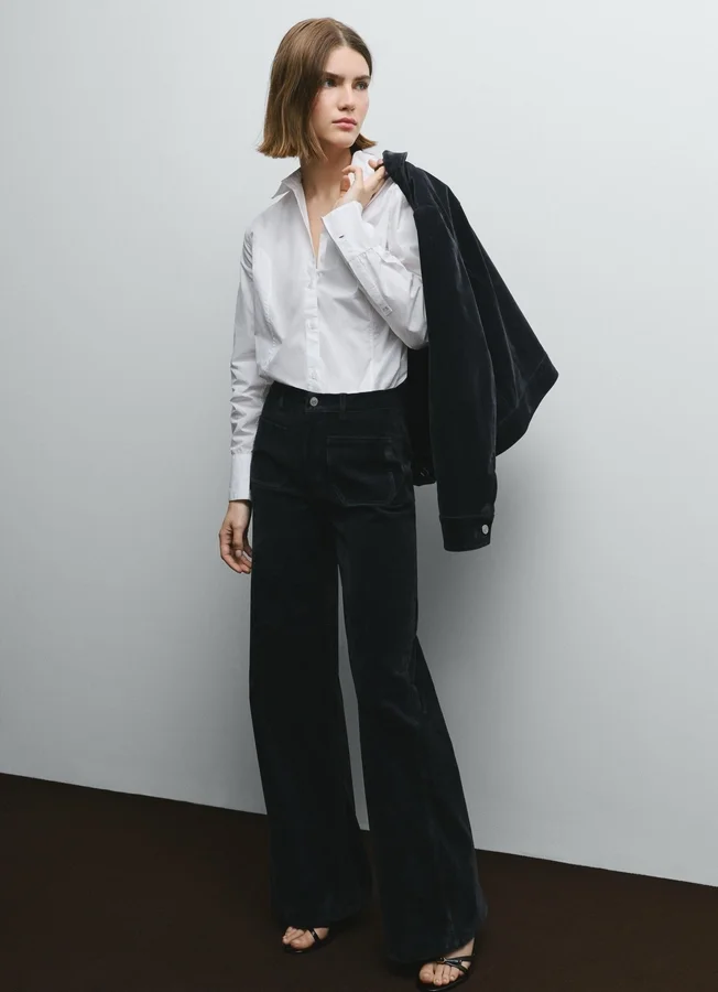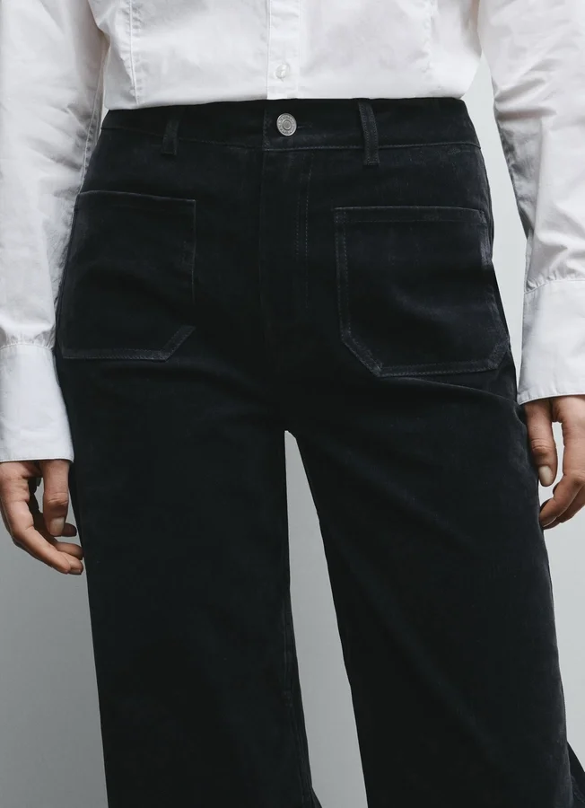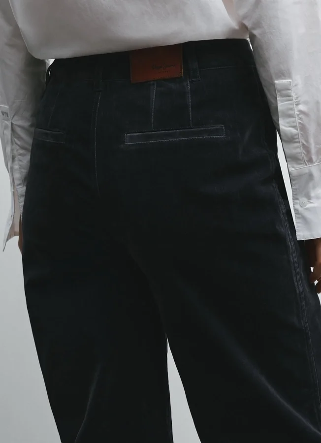 – Wide trousers in stretch velvet twill. A fit you can depend on for maximum comfort and style