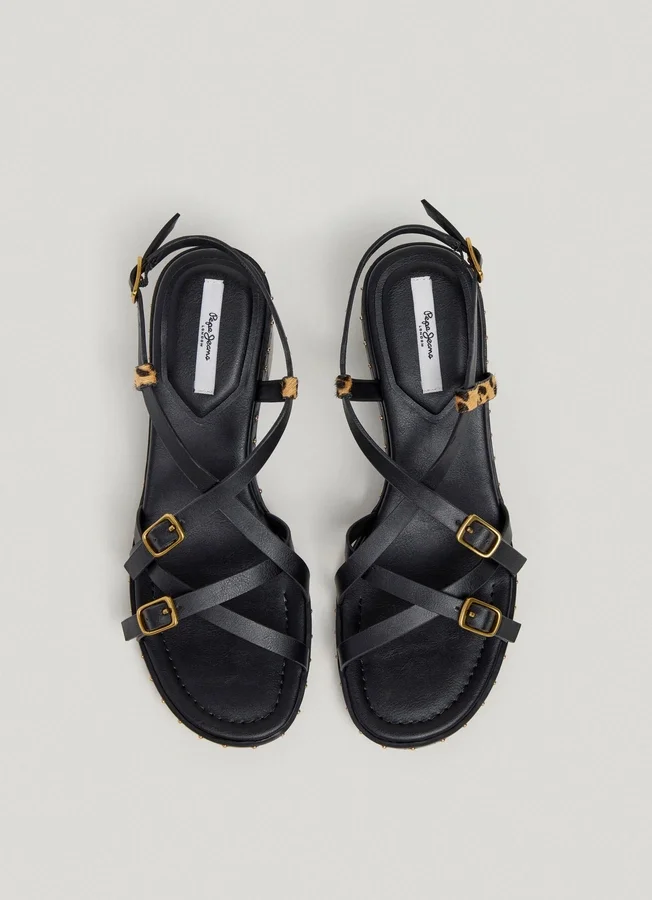 – Flat sandals made in leather effect