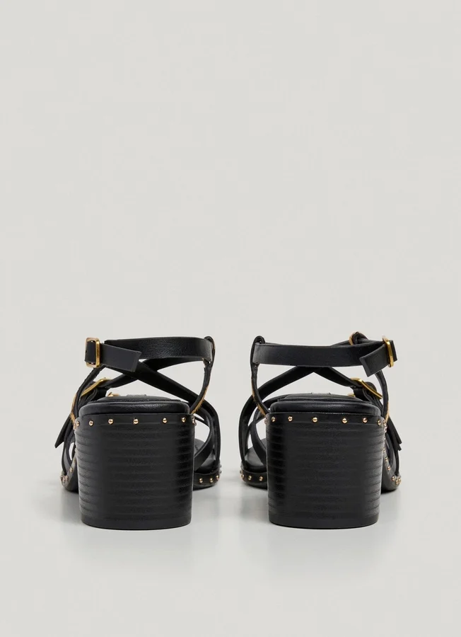 – Ankle strap closure with metal buckle