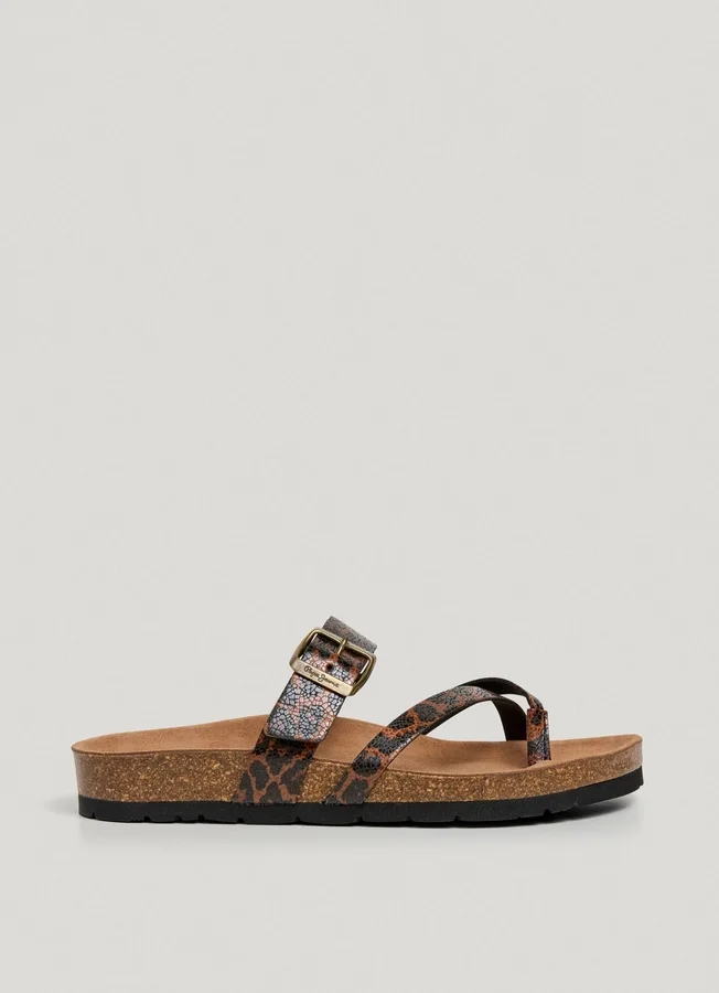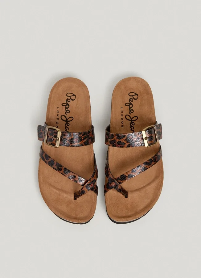Animal Print Sandals with Buckle