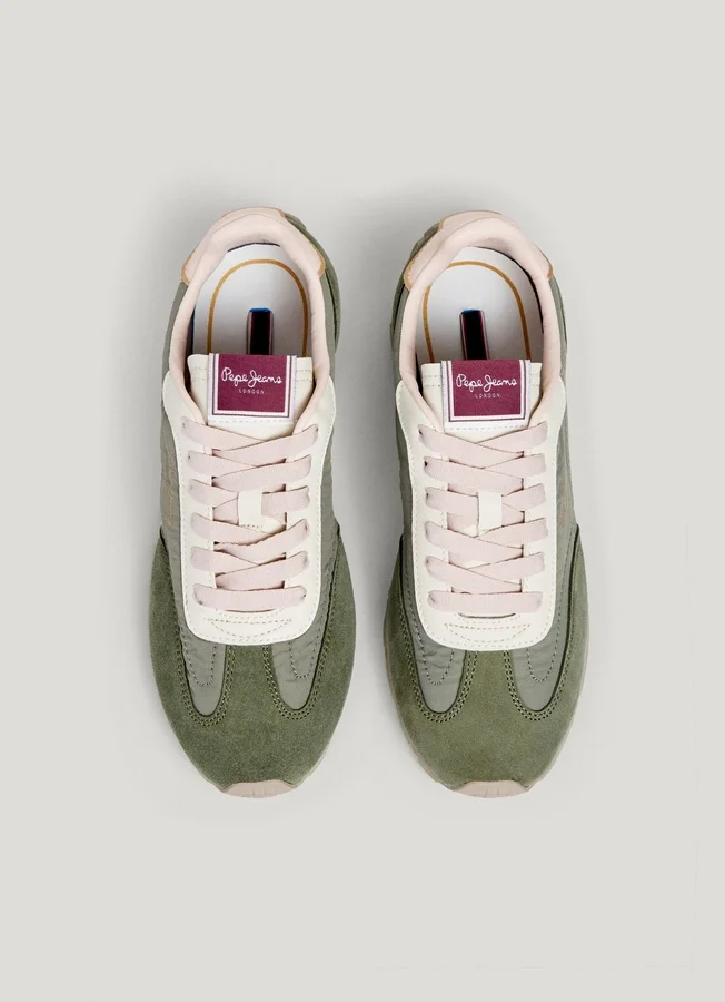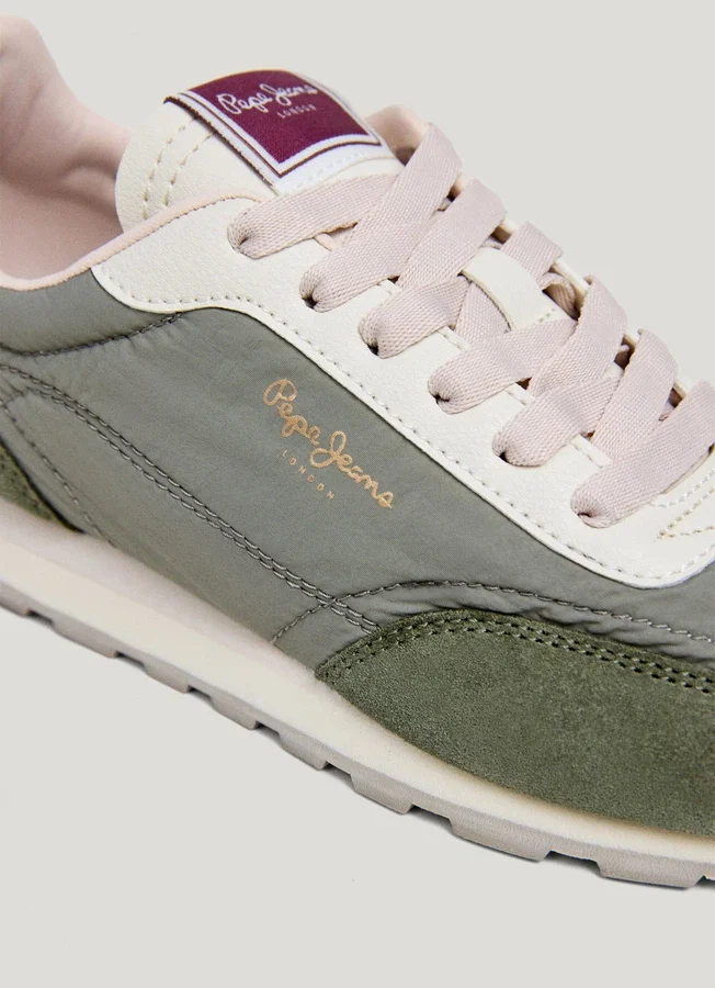 – Running trainers in a combination of materials