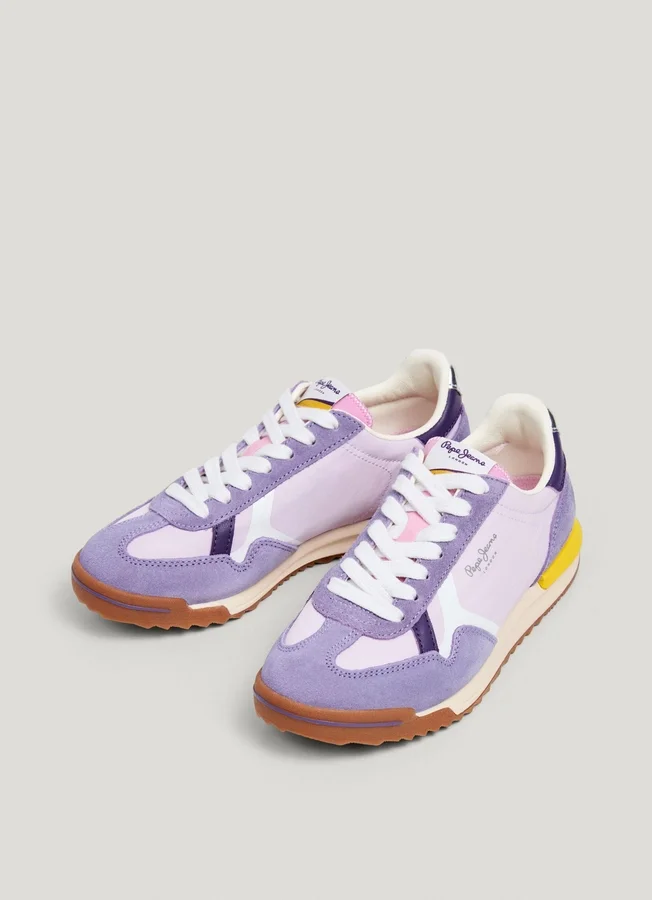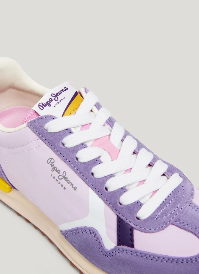 – Retro trainers in a combination of materials and colour contrast