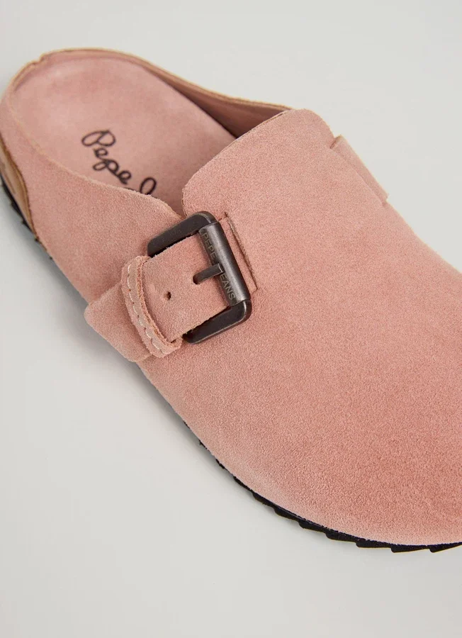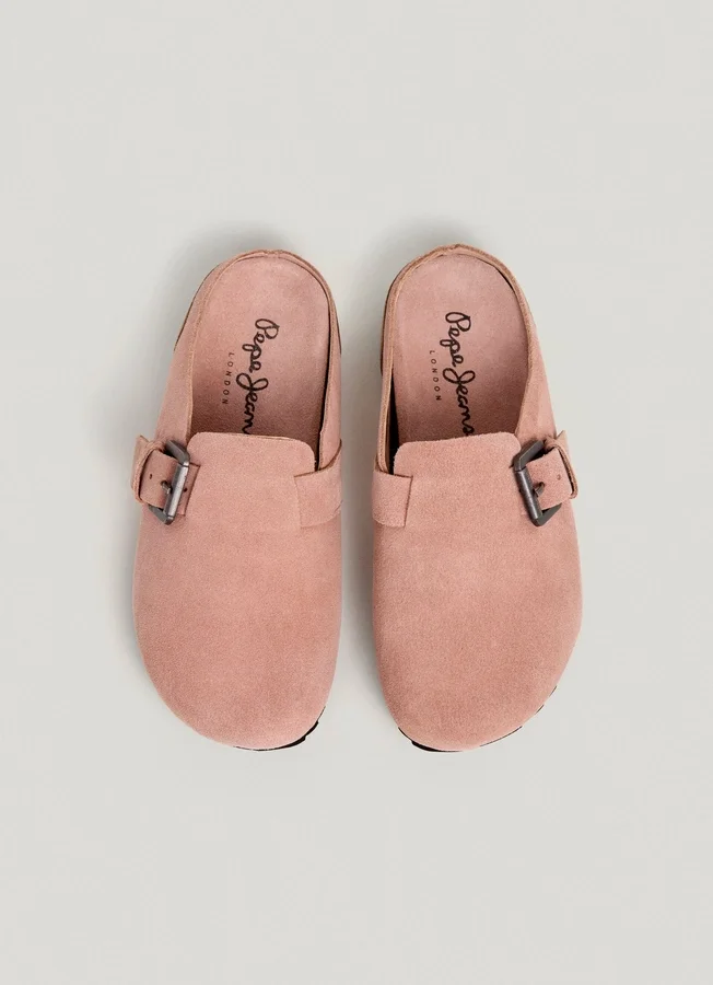 – Clog-style sandals in cowhide suede